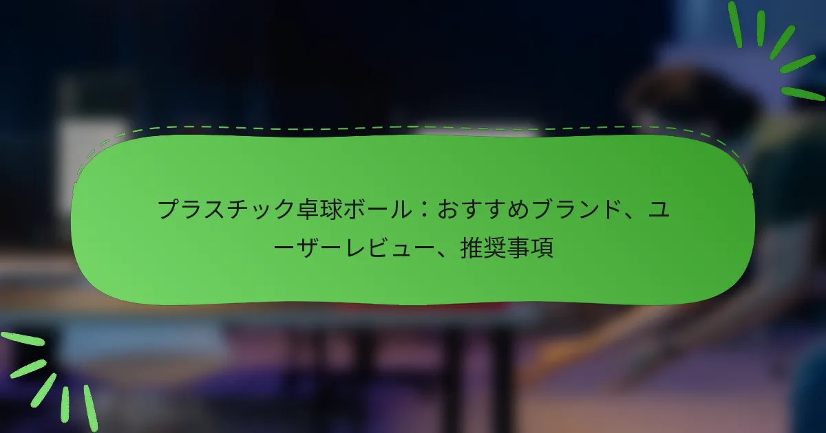 プラスチック製卓球ボールを選ぶ際には、ゲームプレイやプレイヤーの好みに大きく影響を与えるいくつかの重要な要素があります。これには、素材の品質、ボールの重さ、バウンドの一貫性、耐久性、スピン特性、プレイヤーのスキルレベル、ブランドの評判、価格帯が含まれます。