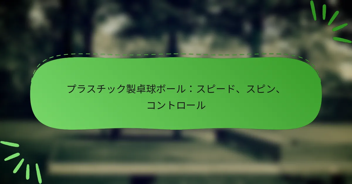 プラスチック製卓球ボールのスピードを決定する要因はいくつかあり、ボールの素材、デザイン、プレイヤーの技術が含まれます。使用されるプラスチックの種類は、ボールのバウンドや全体的な速度に影響を与える可能性があります。さらに、プレイヤーのストロークメカニクス、例えばパドルの角度や加えられる力は、ボールがどれだけ速く移動するかに重要な役割を果たします。