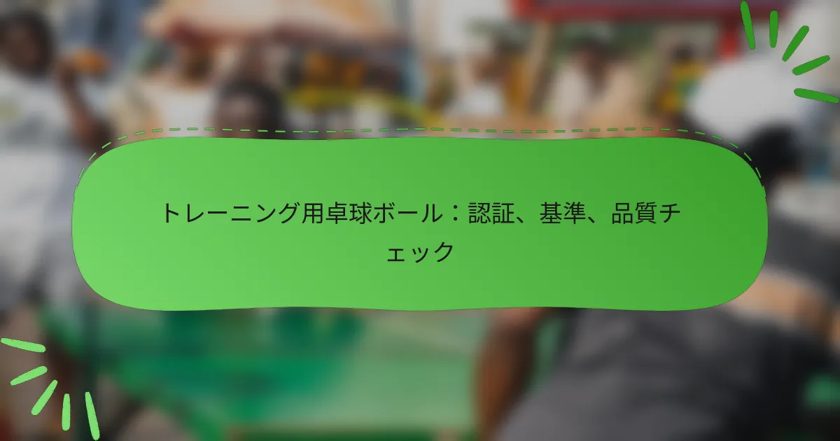 トレーニング用卓球ボールは、品質とパフォーマンスを確保するために特定の認証を満たす必要があります。最も認知された認証は国際卓球連盟(ITTF)からのもので、競技用に使用されるボールの基準を設定しています。