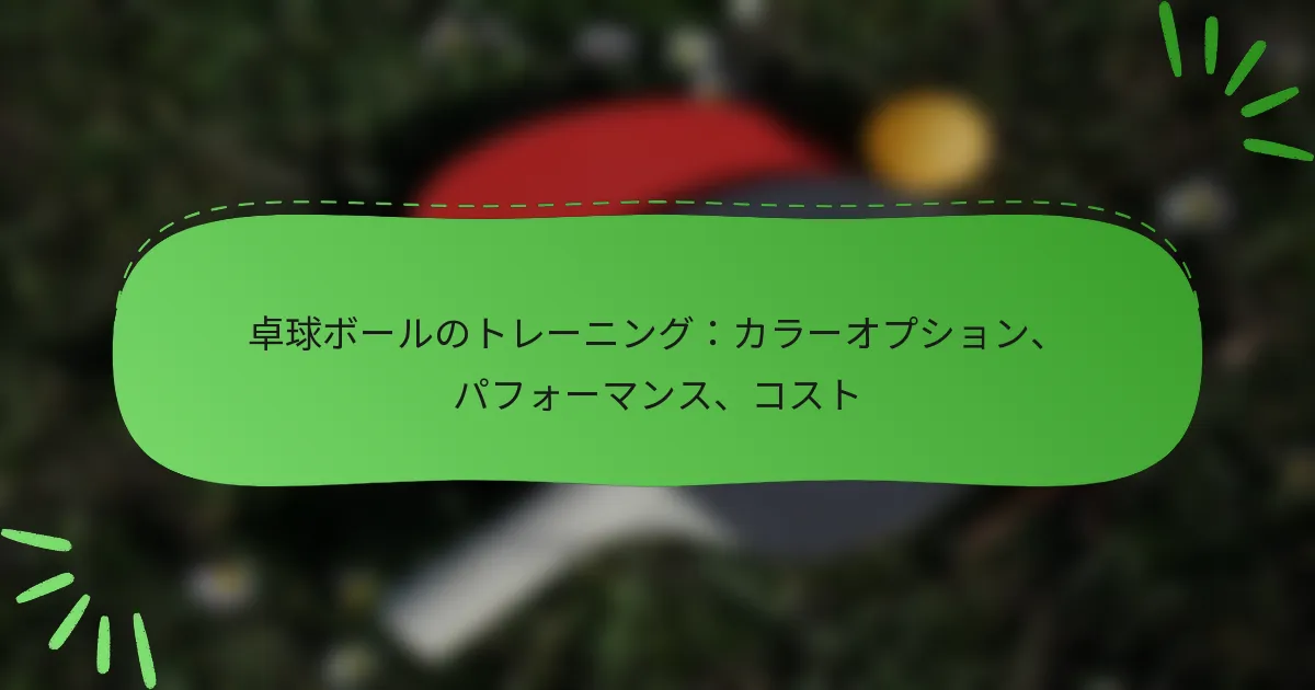 トレーニング用の卓球ボールは、白、オレンジ、黄色などさまざまな色があり、それぞれが視認性を高め、プレーヤーの好みに応じて設計されています。これらのボールのパフォーマンスレベルは大きく異なり、バウンド、スピン、耐久性に影響を与え、異なるスキルレベルに適した選択をするために重要です。さらに、価格は数ドルから約20ドルまでの範囲で、初心者と上級者の両方が予算内で適切なオプションを見つけることができます。
